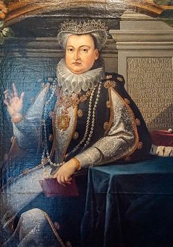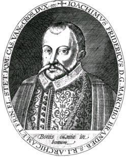 | Home Surname List Name Index Sources | Twelfth Generation15. His first marriage in 1570 was to Catherine, Princess of Brandenburg-Küstrin (1549–1602), daughter of John I, Margrave of Brandenburg-Küstrin, and Catherine, Duchess of Brunswick-Wolfenbüttel. Joachim Frederick's second marriage, in 1603, was to Eleonore of Hohenzollern (1583–1607), daughter of Albert Frederick, Duke of Prussia and Mary Eleonore of Cleves. He became regent of the Duchy of Prussia in 1605, because Albert Frederick was becoming increasingly ill. Both of Johann Georg's wifes and some of his children are buried in the crypt underneath the Berlin Cathedral." He was buried in Berlin, Brandenburg Province, Margraviate of Brandenburg.3 in the Berliner dom. Joachim Friedrich VON BRANDENBURG (+) and Katharina VON BRANDENBURG-KUSTRIN (+) were married in 1570.3 Joachim Friedrich VON BRANDENBURG (+) and Katharina VON BRANDENBURG-KUSTRIN (+) had the following children: