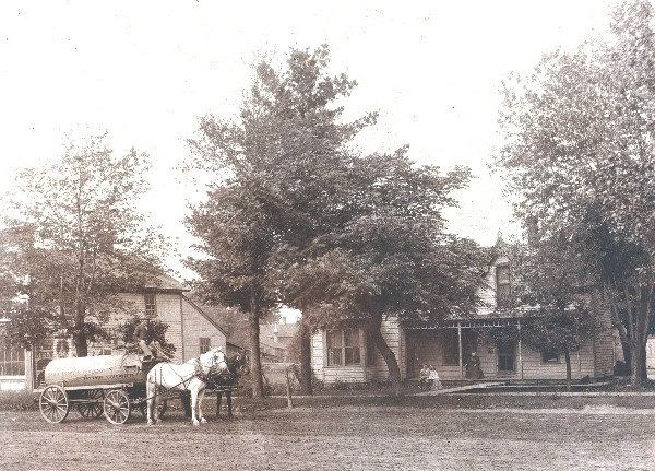 123. Mary Boyce SOULE (<) (~) was born on 8 November 1847 in Danbury, Rutland County, VT.26,32,34,52,53,54,55 (The Oak Grove Cemetery records list her birth year as 1848.) (According to her Marriage Registration Record to Will Hoag, she was born in Darrelle, VT.) (This is a picture of her home, with her husband's team and wagon.) She appeared in the census in 1850 in Danby, Rutland County, VT.25 She appeared in the census in 1860 in Wilton Township, Monroe County, WI.32 Mary appeared in the census in 1870 in Wilton Township, Monroe County, WI.33 She appeared in the census in 1880 in Tomah, Tomah Township, Monroe County, WI.34 She died on 19 April 1908 at the age of 60 in Tomah, Tomah Township, Monroe County, WI.53,54 (The Oak Grove Cemetery records list her date of death as 6 Jun 1908.) Mary was buried in Tomah, Tomah Township, Monroe County, WI.56 in the Oak Grove Cemetery. Mary Boyce SOULE (<) (~) and Ellis Simeon WOOD were married on 28 October 1871 in Monroe County, WI.39,52 Ellis Simeon WOOD, son of Simeon D. WOOD and Mary Jane PIERCE, was born on 25 September 1844 in Millbury, Worcester County, MA.32,34,39,52,57 (His middle initial was listed as "L" in the Marriage Registration Index, and as "H" in the newspaper obituary in the Monroe County Genealogical Branches.) He appeared in the census in 1860 in Tomah Township, Monroe County, WI.32 He appeared in the census in 1870 in Tomah Township, Monroe County, WI.33 He was living with his parents and his occupation was listed as "Farm Laborer.") Ellis appeared in the census in 1880 in Tomah, Tomah Township, Monroe County, WI.34,52 His occupation was listed as "Blacksmith." He died on 6 June 1881 at the age of 36 in Tomah, Tomah Township, Monroe County, WI.52,57 Mary Boyce SOULE (<) (~) and Ellis Simeon WOOD had the following children: 171 | i. | Nellie J. WOOD was born about 1876 in Tomah, Tomah Township, Monroe County, WI.26,34 She appeared in the census in 1880 in Tomah, Tomah Township, Monroe County, WI.34 She died about 1885 at the age of 9 in Monroe County, WI.58 Obituary Notes: "Nellie, eldest daughter of Mrs. Mary B. Wood, of this city, on the 4th inst., in her 9th year, of Inflamation of the brain." | +172 | ii. | Lottie Jane WOOD. | 173 | iii. | Ellis Wood WOOD Jr. was born about 1880 in Tomah, Tomah Township, Monroe County, WI.26 |