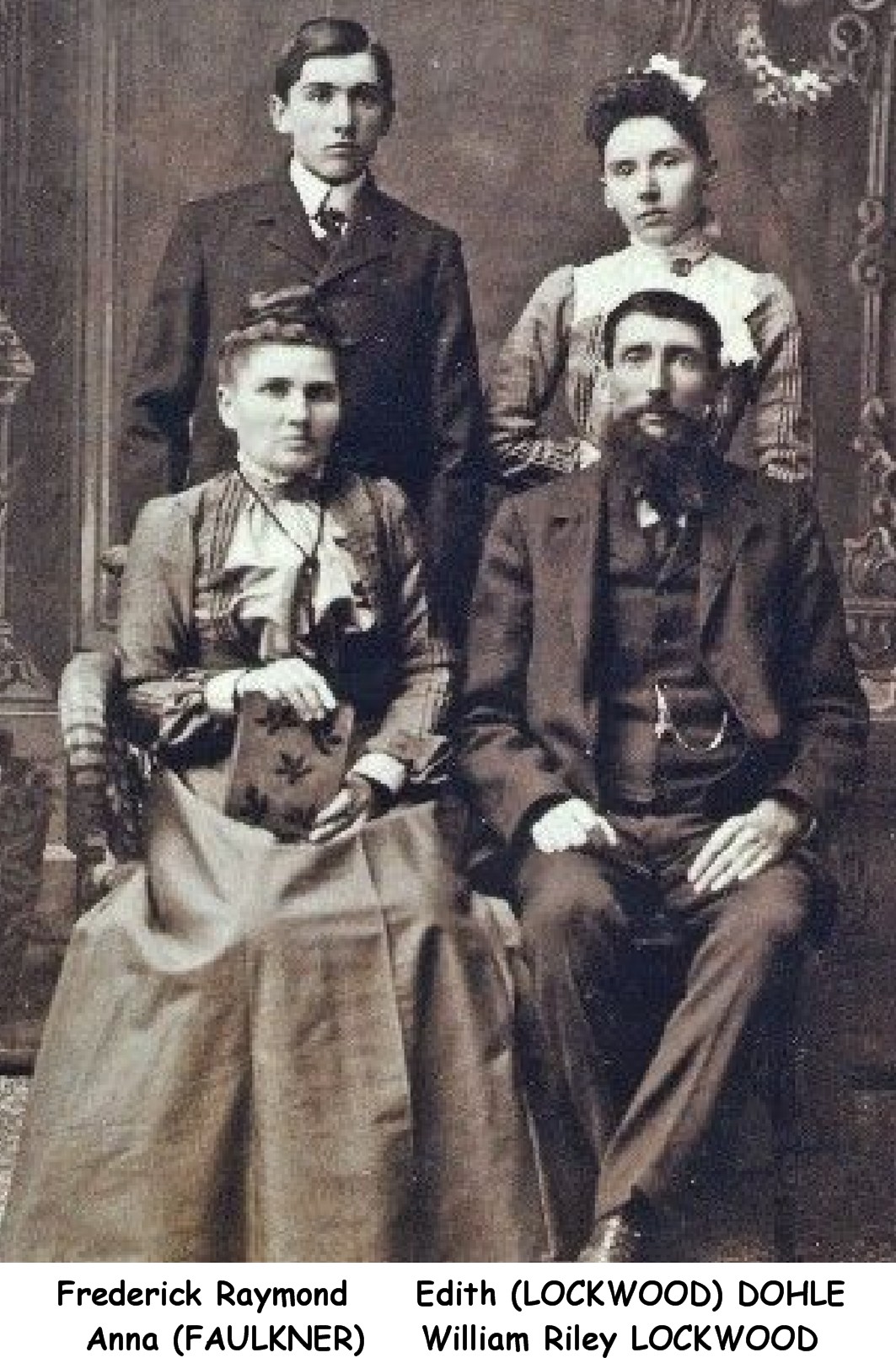 | Home Surname List Name Index Sources | Twelfth Generation857. Robert J. DOHLE was born in February 1880 in Oconomowoc Township, Waukesha County, WI.65,577 He appeared in the census in 1900 in La Grange Township, Monroe County, WI.65 Robert J. DOHLE and Edith M. LOCKWOOD were married on 30 November 1902 in La Grange Township, Monroe County, WI.62,577 . |