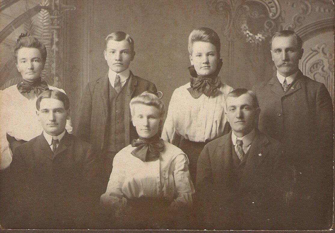 | Home Surname List Name Index Sources | Tenth Generation315. (Edwin is listed as "Edward" in the 1880 Census.) . He appeared in the census in 1900 in Greenfield Township, Monroe County, WI.125 His household was next to that of his parents, and he owned an 80-acre farm in the north portion of Section 9. His occupation was listed as "Farmer." He appeared in the census in 1910 in Greenfield Township, Monroe County, WI.157 His occupation was listed as "Farmer, General Farm." Eddie appeared in the census in 1920 in Beloit, Beloit Township, Rock County, WI.283 His household was located at 1125 Hacket (?) Street and his occupation was "Machinist, Farm Implements." He appeared in the census in 1930 in Beloit, Beloit Township, Rock County, WI.284 His residence was at 815 Fifth Street and his occupation was "Erector, Machine Shop." (He was listed as "Edward D.") He died on 29 March 1941 at the age of 66 in Beloit, Beloit Township, Rock County, WI.37,73,158,169 Eddie was buried in Rock County, WI.37,169 in the Eastlawn Cemetery. Edwin Daniel "Eddie" PURDY (~) and Arcenith "Cena" OAKLEY were married on 11 May 1898 in Greenfield Township, Monroe County, WI.73,122,158,169,285,286 Newspaper Article: "At the home of the bride's parents in the town of Greenfield, May 11, 1898, Mr. E. D. Purdy and Miss Cena Oakley. The marriage took place at the home of Mr. Oakley, ex-chairman of the town of Greenfield. The ceremony was performed by Rev. T. M. McClung of La Grange. The young couple were received of a large number of beautiful and useful gifts." Edwin Daniel "Eddie" PURDY (~) and Arcenith "Cena" OAKLEY had the following children: