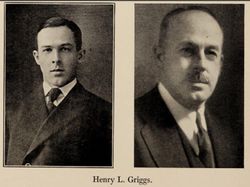 417. Henry Little GRIGGS Sr. (~) (!) was born on 19 June 1881 in Terryville, Plymouth Township, Litchfield County, CT.31,50 He appeared in the census in 1900 in Middlebury, New Haven County, CT.256 He was living with his parents and his occupation was "Student." He graduated in 1903 in New Haven, New Haven County, CT.25 from Yale University. Between 1909 and 1930 Henry was in Waterbury, Waterbury Township, New Haven County, CT.405 His occupation was "Sales, The Bristol Company." He registered for the Military Draft about 1917 in Waterbury, Waterbury Township, New Haven County, CT. 58 He appeared in the census in 1930 in Waterbury, Waterbury Township, New Haven County, CT.406 He was listed as married, but he was living by himself at 222 Pine Street. His occupation was listed as "Sales Manager, Instrument Factory." After 1930 he was in New Haven County, CT.86 He was an insurance agent. Between 1932 and 1943 Henry was in Waterbury, Waterbury Township, New Haven County, CT.142 His occupation was "Director, Bristol Co. Oft River Road Platts Mills Bridge." He appeared in the census in 1940 in Waterbury, Waterbury Township, New Haven County, CT.407 Their household was at 70 Champman Avenue. No occupation was listed for him, so he may have been retired. The Census indicated that he had completed 4 years of college. He registered for the Military Draft in 1942 in Waterbury, Waterbury Township, New Haven County, CT. 58 He appeared in the census on 4 April 1950 in Waterbury, Waterbury Township, New Haven County, CT.408 His household was at 35 Kenilworth Street and his occupation was "Personnel Counciler, Personnell (sic)." Henry appeared in the census in 1970 in Waterbury, Waterbury Township, New Haven County, CT.250 He died on 11 September 1970 at the age of 89 in Middlebury, New Haven County, CT.31,50 He was buried in Terryville, Plymouth Township, Litchfield County, CT.50 in the Hillside Cemetery. Henry Little GRIGGS Sr. (~) (!) and Harriett Lewis AIKEN were married on 23 June 1923 in Coraopolis Heights, Allegheny County, PA.31,42,50,86,273,406 Newspaper Article: "AL Fresco ceremonies on the lawns of country homes promose to add a most attractive and artistic touch to many of the June weddings. Miss Harriet Lewis Aiken, daughter of Mr. and Mrs. Herman Lewis Aiken, has chosed June 23 for her marriage to Henry Little Griggs of New York. The ceremony will be an early affair, taking place out of doors at the home of Miss Aiken's aunt, Mrs. Nathan A. Weed, Coraopolis Heights." Harriett Lewis AIKEN25, daughter of Herman Lewis AIKEN and Lucinda Jeannette CONNELL, was born on 2 June 1897 in Pittsburgh, Allegheny County, PA.31,50,406 She appeared in the census in 1910 in Pittsburgh, Allegheny County, PA.409 She appeared in the census in 1920 in Pittsburgh, Allegheny County, PA.409 Harriett appeared in the census in 1930 in Waterbury, Waterbury Township, New Haven County, CT.406 She appeared in the census in 1940 in Waterbury, Waterbury Township, New Haven County, CT.407 The Census indicated that she had completed 1 year of college. She appeared in the census on 4 April 1950 in Waterbury, Waterbury Township, New Haven County, CT.408 Harriett died on 15 August 1974 at the age of 77 in Middlebury, New Haven County, CT.31,50,410 Obituary Notes: "Mrs. Harriett (Aiken) Griggs, 77, widow of Henry L. Griggs, formerly of Waterbury, died Thursday at the Middlebury Convalescent Hospital after a long illness. She was born June 2, 1897, in Pittsburgy, Pa., daughter of the late Herman and Lucinda (Connel) Aiken. She had been a long-time resident of Waterbury and was a member of the First Congregational Church. Mrs. Griggs leaves three sons, Henry, Jr. and Edward, both of New York city, and Thomas, of Milford; two brothers, Edward, of Fox Chapel, Pa., and Herman, Jr., of Sohola, Pa.; and five grandchildren. Funeral services will be held Sunday at 2 p.m. at the Levi Wilcox Chapel of the First Congregational Church in Waterbury, with the Rev. B. Kenneth Anthony officiating. Burial will be in the Hillside Cemetery in Terryville. Friends may call at the Alderson Funeral Home, 70 Central Ave., Waterbury, today from 2 to 4 p.m. Remembrances may be made to the Memorial Fund of the First Congregational Church in Waterbury." She was buried in Terryville, Plymouth Township, Litchfield County, CT.258 in the Hillside Cemetery. Henry Little GRIGGS Sr. (~) (!) and Harriett Lewis AIKEN had the following children: +679 | i. | Henry Little "Harry" GRIGGS Jr. (~). | 680 | ii. | Edward Aiken GRIGGS (~) was born on 18 July 1928 in Waterbury, Waterbury Township, New Haven County, CT.31,406,411 He appeared in the census in 1930 in Waterbury, Waterbury Township, New Haven County, CT.406 He appeared in the census in 1940 in Waterbury, Waterbury Township, New Haven County, CT.407 Edward appeared in the census on 4 April 1950 in New Haven, New Haven County, CT.412 He lived in New York City, Kings County, NY in August 1974.413 He died on 29 June 1999 at the age of 70 in New York City, Kings County, NY.86,411 Edward was buried in Terryville, Plymouth Township, Litchfield County, CT.86,258 in the Hillside Cemetery. | +681 | iii. | Thomas Stearns GRIGGS Sr. (~) (!). |