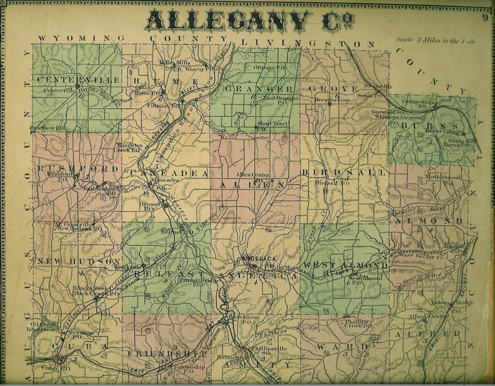 36. Reverend Samuel J. GRISWOLD (*)193 was born on 28 February 1795 in Granville Township, Washington County, NY.38,146,336,339,538,539,540,541 (This is a map of an Eastern portion of New York state, with Washington County on the Vermont border.) (The FamillySearch.org and MyHeritage.com websites list his birth year as 1798 in Fort Ann and his date of death as 19 January 1863. The 1798 birth year is believed to be incorrect.) The family history book written by Samuel's youngest son, Hiram Hector Griswold, lists his birthplace as Granville Township, Washington County, NY. Other sources list it as Fort Ann Township in the same county. The 1900 Census for his son, Samuel H., listed his birthplace as Vermont, but that was an error. Samuel J. may have had a brother named Horace Griswold, whose oldest children were born in Fort Ann about the same time as those of Samuel. He may have also had another brother, Squire, who was born 17 Aug 1798 in Fort Ann. The 1800 Census of Chester Township, Washington County, NY, includes a Samuel Griswold with a household consisting of 2 males, age under 10; 1 male, age 26-44; 3 females, age 0-10; and 1 female, age 16-25. Samuel J. would have fit this family's profile, so this may have been his parents and siblings. There is a record of the marriage of a Samuel Griswold and Hannah Landon, married 3 August 1789 in Chester Township, Warren County (at that time), NY; they may also have been Samuel J.'s parents (5 children were in the family at that time). The 1810 Census of Chester Township includes this same family with 8 children including 4 males, age under 10; 1 male, age 10-15; 1 male, age 26-44; 2 females, age 10-15; 1 female, age 16-25; and 1 female, age 26-44. Samuel J. would have been about 15 at the time. From the Granville, NY, Web site: "Settlements were effected prior to the Revolution. The first emigrants were mostly from New England. The attempt in 1781 to place themselves under the jurisdiction of Vermont was due to the fear of invasion, as the Revolutionary (War) was not then closed, and it was thought to be easier to secure the necessary protection from Vermont than from New York. Besides, they favored the New England institutions of universal suffrage and individual ownership of land, rather than the property qualification required by New York and the feudal land system, granting the soil in large manors to be cultivated by tenants. The progress of early settlement was slow. A state of war was unfavorable to emigration and to the development of the arts of peace. Conflicting land-titles also discouraged settlers. Soon after the war closed, these valleys filled up as if by magic. The settlement of the boundary lines cleared away the difficulties to some extent, and the final adjustment between New York and Vermont, in 1790, left titles mostly clear and unquestioned. Emigrants purchased with confidence, cleared their lands, and erected their dwellings without fear of ejectment. The first settlement undoubtedly dates back to about 1770, and probably even earlier than that—at least twenty years before the first recorded town-meeting of 1787. Several lists of names that appear under the head of church history, etc., show quite a population in the midst of the Revolutionary war. The Congregational church of Middle Granville had, in 1782, a membership on seventy-two. The petitioners for pardon and amity in 1782, thirty-seven. These lists, together with the names found upon the town books for 1787-88, constitute the sources from which we determine the early settlers and, approximately, the time when they came to this town." Source: The History of Granville, Middle Granville & North Granville, New York, 1737-1878. Reproduced from 1878 History of Washington County Published by The Bicentennial Committee of Granville, New York 1975. From Wikipedia: "Granville Township is a town on the eastern border of Washington County, abutting Rutland County, Vermont. The town of Granville contains a village that also bears the name Granville. It is named for John Carteret, 2nd Earl Granville, and has been called the "Colored Slate Capital of the World." Quarries in the town mine slate that comes in colors such as green, gray, gray black, purple, mottled green and purple, and red." After 1815 he was a Free Will Baptist Minister in New York.54,144,146,542,543 The history of "The First Seventh-Day Baptist Church" in Genessee Township, Allegany County, contains the following two items that may have referred to Samuel's ministry: "In 1844 S. S. Griswold was engaged and became the first pastor of the church. He remained a little over a year." "The Sabbath-school was commenced in 1844 as a Bible class, with thirty-five members and S. S. Griswold as leader." (Because of the differences in the middle initial, the above person may not be this Samuel.) He appeared in the census in 1820 in Alfred Township, Allegany County, NY.544,545 His household consisted of Samuel (Male, age 26-45); his wife, Clarissa (Female, 26-45); their son, Gerome (Male, under 10); and their daughter, Hannah Jane (Female, under 10).