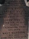 Home Surname List Name Index Sources | Pedigree Chart | 2 John ROOTE II (*)(|)(:)440  | 4 John Charles ROOTE I (*)(|)(=)(:)(/)143,440  | 8 Thomas John ROOTE (*)(|)(=)(:)(/)116,442  |  | b: 6 January 1555 in Badby, Daventry District, Northamptonshire, England116,395,429,530,531 m: 1575 in Badby, Daventry District, Northamptonshire, England116,442 d: 5 April 1609 in Northampton, Northamptonshire, England116,429,531,532 | | b: 24 June 1576 in Milton Malsor, South Northamptonshire Borough, Northamptonshire, England161,429,430,531 m: 23 July 1600 in Badby, Daventry District, Northamptonshire, England161,252,429,430,533 d: 29 October 1615 in Milton Malsor, South Northamptonshire Borough, Northamptonshire, England143,161,252,429,531,533,534,535 | 9 Anne BURRELL (*)(|)(=)(:)(/)116,440  |  | b: 11 January 1555 in Badby, Daventry District, Northamptonshire, England116,429,531,536 d: 1610 in Badby, Daventry District, Northamptonshire, England143,531 | | b: 26 February 1608 in Badby, Daventry District, Northamptonshire, England85,161,252,274,279,429,430 m: 10 January 1639 in Farmington Township, Hartford County, Connecticut Colony, British Colonial America143,274,432,440,441,442 d: 16 August 1684 in Farmington Township, Hartford County, Connecticut Colony, British Colonial America85,161,274,279,429,430 | 5 Mary RUSHALL (*)(|)(=)(:)(/)116,161,440 | 10 Francis Thomas RUSSELL (*)(|)(=)(:)(/)116,143,161 |  | b: 12 October 1553 in Badby, Daventry District, Northamptonshire, England442 m: 15 April 1571 in Devonshire, England105,429,430,442 d: 27 July 1585 in Badby, Daventry District, Northamptonshire, England105,143 | | 1 John ROOTE III (*)22,105  | b: July 1579 in Badby, Daventry District, Northamptonshire, England161,252,429,430 d: after July 1614 in Badby, Daventry District, Northamptonshire, England143,532 | 11 Eleanor Juliana FORSTER (*)(|)(=)(:)(/)116 | | b: 10 January 1556 in Of Badby, Daventry District, Northamptonshire, England105,442 d: 1585 in Badby, Daventry District, Northamptonshire, England105,442 | | | | b: 23 December 1642 in Farmington Township, Hartford County, Connecticut Colony, British Colonial America143,161,297,424,429,430 m: 18 October 1664 in Springfield, Hampden County, Massachusetts Bay Colony, British Colonial America85,143,424,429,430 d: 24 September 1687 in Westfield, Westfield Township, Hampden County, Massachusetts Bay Colony, British Colonial America85,143,161,424,429,430 | 6 Thomas KILBOURNE Sr. (*)(|)(:)  | 12 John KILBOURNE III (*)(|)(:) |  | b: about 1538 in Woodditton, East Cambridgeshire District, Cambridgeshire, England430 m: about 1566 in Woodditton, East Cambridgeshire District, Cambridgeshire, England105,430 d: 30 October 1591 in Woodditton, East Cambridgeshire District, Cambridgeshire, England430 | | 3 Mary KILBOURNE (*)(|)(:)  | b: 8 May 1578 in Woodditton, East Cambridgeshire District, Cambridgeshire, England430 m: 5 September 1604 in Moulton, Suffolk County, England430 d: 5 September 1640 in Weathersfield, Hartford County, Connecticut Colony, British Colonial America143,430 | 13 Anne COLLYNS (*)(|)(:)143 | | b: 5 June 1548 in Woodditton, East Cambridgeshire District, Cambridgeshire, England105,143 d: February 1632 in Cambridgeshire, England143 | | b: 12 May 1619 in Woodditton, East Cambridgeshire District, Cambridgeshire, England161,252,424,430 d: 9 January 1697 in Farmington Township, Hartford County, Connecticut Colony, British Colonial America143,161,274,429,430 | 7 Frances MOODY (*)(|)(:) | 14 George MOODY (*)(|)(:) | | b: before 28 September 1560 in Moulton, Suffolk County, England430 m: 1580 in Of Moulton, Suffolk County, England105,430 d: 23 August 1607 in Moulton, Suffolk County, England105 | | b: 11 October 1584 in Woodditton, East Cambridgeshire District, Cambridgeshire, England430 d: 10 November 1650 in Wethersfield, Hartford County, Connecticut Colony, British Colonial America430 | 15 Margaret NEWCE (*)(|)(:) | | b: about 1560 in Kennett, Cambridgeshire, England430 d: 25 January 1602 in Moulton, Suffolk County, England105 | |