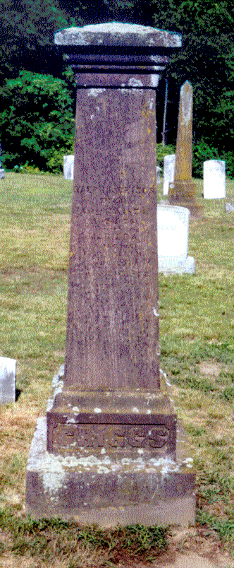 738. Ralph Rodolphus GRIGGS was born on 31 January 1798 in Tolland Township, Tolland County, CT.178,184,224,258 He appeared in the census in 1830 in Tolland Township, Tolland County, CT.327 His household consisted of 1 male, age 30-40; 1 female, age 5-10; 1 female, age 15-20; and 1 female, age 30-40. He appeared in the census in 1850 in Tolland Township, Tolland County, CT.312 Ralph died on 22 August 1874 at the age of 76 in Tolland, Tolland County, CT.174,178 He was buried in Tolland Township, Tolland County, CT.174,178 in the South Yard Cemetery on Cider Mill Road. The gravestone inscription for Ralph and his wife Marilda are on the west side of an obelisk. On the north side are the inscriptions for his parents, Captain Stephen Griggs and his wife Elizabeth. Gravestone Inscription: "Ralph R. Griggs Aug 22, 1874 Aged 76. Marilda wife of R. R. Griggs Died July 26, 1862 Aged 71" Ralph Rodolphus GRIGGS and Morildah "Marilda" MERRICK were married on 15 June 1821 in Willington Township, Tolland County, CT.184 Morildah "Marilda" MERRICK was born in 1801 in Willington Township, Tolland County, CT.174,178 She appeared in the census in 1850 in Tolland Township, Tolland County, CT.312 She died on 26 July 1862 at the age of 61 in Tolland Township, Tolland County, CT.174,178 Marilda was buried in Tolland Township, Tolland County, CT.174,178 in the South Yard Cemetery on Cider Mill Road. She and her husband share a gravestone marker. Ralph Rodolphus GRIGGS and Morildah "Marilda" MERRICK had the following children: 954 | i. | Harriett Mariah GRIGGS was born on 25 September 1822 in Tolland Township, Tolland County, CT.224,312 She appeared in the census in 1850 in Tolland Township, Tolland County, CT.312 |