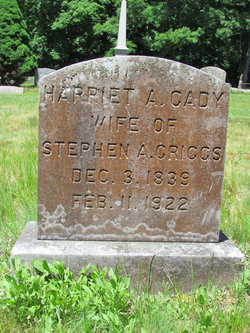 928. Stephen Albert GRIGGS60,159 was born on 28 July 1844 in Abington, Pomfret Township, Windham County, CT.169,178,184 He appeared in the census in 1880 in Pomfret Township, Windham County, CT.585 He died on 25 November 1910 at the age of 66.178 Stephen has Ancestral File Number R8LC-7W. He was buried in Danielson, Windham County, CT.178 in the Westfield Cemetery. Stephen Albert GRIGGS and Harriet Angeline CADY were married on 17 November 1869 in Pomfret Township, Windham County, CT.169,184 Harriet Angeline CADY60,159, daughter of Charles CADY and Lectania CHASE, was born on 3 December 1839 in Pomfret Township, Windham County, CT. She appeared in the census in 1880 in Pomfret Township, Windham County, CT.585 She died on 11 February 1922 at the age of 82 in Hartford, Hartford County, CT.178 Harriet has Ancestral File Number R8LC-83. She was buried in Brooklyn, Windham County, CT.178 in the South Cemetery. Stephen Albert GRIGGS and Harriet Angeline CADY had the following children: 1128 | i. | Jennie A. GRIGGS60,159 was born about 1869 in Pomfret Township, Windham County, CT. She has Ancestral File Number R8LC-98. | 1129 | ii. | Martha Antania GRIGGS60,159 was born on 25 January 1871 in Pomfret Township, Windham County, CT.184 She appeared in the census in 1880 in Pomfret Township, Windham County, CT.585 She has Ancestral File Number R8MB-CK. | 1130 | iii. | Mabel Isabella GRIGGS60,159 was born on 23 July 1872 in Pomfret Township, Windham County, CT.184 She appeared in the census in 1880 in Pomfret Township, Windham County, CT.585 She died on 9 May 1950 at the age of 77 in Brooklyn, Windham County, CT.169 Mabel has Ancestral File Number R8MB-FW. | 1131 | iv. | Sabine Edward GRIGGS60,159 was born on 18 January 1878 in Pomfret Township, Windham County, CT.184 He appeared in the census in 1880 in Pomfret Township, Windham County, CT.585 He died on 2 December 1970 at the age of 92 in Hartford, Hartford County, CT.169 Sabine has Ancestral File Number R8MB-G3. | 1132 | v. | Clement Irving GRIGGS60,159 was born on 16 January 1881 in Pomfret Township, Windham County, CT.178 He died on 29 August 1924 at the age of 43 in Huntington, Fairfield County, CT.178 He has Ancestral File Number R8MB-JF. Clement was buried in Huntington, Fairfield County, CT.178 in the Huntington Lawn Cemetery West. |
