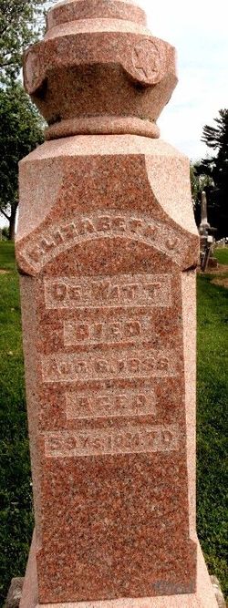| Home Surname List Name Index Sources | Thirteenth Generation958. On Sept. 10, 1845 of record at Mansfield, Conn., Elizabeth m. Henry DeWitt. He d. Jan. 21, 1885 at Palmyra, Missouri. An enlarged background of the family, including a summary of their children, is contained in Henry DeWitt's memorial. Through their mother, all of the subsequent Dewitt children were multiple Mayflower descendants. Elizabeth Jane's father Austin Griggs was a descendant of Richard Warren and her mother Orilla Dimock a descendant of John Howland, both passengers of the 1620 Mayflower passage. In addition, Elizabeth was the writer's ancestral cousin, a shared descendant of George Partridge and Sarah Tracy of Duxbury, Mass., latter whose father Stephen Tracy arrived at Plymouth, Mass. in 1621 aboard the Fortune. She was buried in Palmyra, Marion County, MO.178 in the Greenwood Cemetery. Elizabeth Jane GRIGGS and Henry DE WITT were married on 10 September 1845.226,463 They had 6 or 7 children. Elizabeth Jane GRIGGS and Henry DE WITT had the following children: