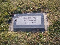 | Home Surname List Name Index Sources | Sixteenth Generation1599. She was survived by two sons, Tim and Corey Sturm, of California; her parents, Arthur and Helen Borchardt of Tomah, Wis.; and her brothers and sisters, Eugene, Donald, Rollie and Rolleene, all of the Cedarburg-Grafton area. Funeral services were held Friday evening, June 6, 1980, at the Mueller Funeral Home, Cedarburg. The burial services were Saturday at Immanuel Cemetery in Cedarburg. Father Terrance Huebner officiated." Deanice was buried on 6 June 1980 in Cedarburg, Ozaukee County, WI.379,968 in the Emmanuel Cemetery. Deanice Ann BORCHARDT (+) (~) and (Unknown) JARZONBECK were married before 1980.379,709 They were married for only two weeks. (Unknown) JARZONBECK was born (date unknown). Deanice Ann BORCHARDT (+) (~) and Joel K. "Joe" STURM were married about 1965 in Milwaukee, Milwaukee County, WI.70 Joel K. "Joe" STURM was born (date unknown). Deanice Ann BORCHARDT (+) (~) and Joel K. "Joe" STURM had the following children:
