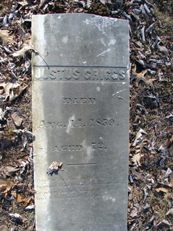 447. Justus GRIGGS was born on 13 August 1787 in Ashford Township, Windham County, Connecticut Colony, British Colonial America.178,184,245 (According to the LDS Church IGI Index, he was a relative of Joseph Smith, the Prophet.) He died on 14 August 1859 at the age of 72.178 He was buried in Ashford, Windham County, CT.178 in the South Ashford Cemetery. Justus GRIGGS and Patience HALL were married. Patience HALL was born in 1788.178 She died on 4 April 1854 at the age of 66.178 She was buried in Ashford, Windham County, CT.178 in the South Ashford Cemetery. Justus GRIGGS and Lucinda EASTMAN were married. Lucinda EASTMAN was born (date unknown). |