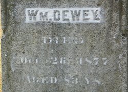 | Home Surname List Name Index Sources | Twelfth Generation161. Probate record for William Dewey of Byron, NY [dated 8 January 1877] has his entire estate going to widow, Tryphena Dewey except for $1 going to his daughter Martha Claflin. The fact that the estate was in Probate Court in January 1877 would suggest that William died in October 1876 and the year on his tombstone of 1877 is in error. The probate record shows that Moses P. Cogswell of Attica, NY (who can be shown to have been a son of William's widow Tryphena) filed for proving of William's will on 6 November 1876 or a little over two weeks after William's death on 21 October 1876. An age at death of 83 years would then suggest that William Dewey was born between 22 October 1792 and 21 October 1793. Family bible record which is available in the pension file of his father, Gideon Dewey, has that son William Dewey was born on 27 January 1793 (this is right within the range suggested by the age on the tombstone and stated age at the 1860 and 1870 censuses). The same bible record has a brother, David, born on 15 December 1797. History of Erie County, PA (1884, p. 664) has "the first male child born in the township [Mill Creek] was David M. Dewey, December 15, 1797..." This matches the birth date in the family bible so suggests that the Gideon Dewey family lived at Mill Creek, Erie County, PA in 1797. 1800 census taken at Erie township, Allegheny County, PA lists a Gideon Dewey as a blacksmith. Erie township became Erie county in 1800 so this confirms that the Gideon Dewey family was still living in Erie County, PA in 1800. The pension file for Gideon Dewey includes an inventory of his property [dated 23 April 1818] and the first item on the list is "one set of blacksmiths tools" and Gideon swore that he was a blacksmith no longer able to labor, which confirms that the Gideon Dewey who was father of William and David (from the family bible record) was a blacksmith. This matches the occupation of Gideon Dewey who was living in Erie Co., PA in 1800. The above suggests that William Dewey was born in Pennsylvania, and that it is possible somewhere in the vicinity of what is now Erie County." William was buried in Byron, Genesee County, NY.61 in the Byron Cemetery. William DEWEY and Martha ROOT were married in 1820 in Mendon, Monroe County, NY.53,54 William DEWEY and Mary ROOT were married in 1828.53,61,63,64 William DEWEY and Mary ROOT had the following children: