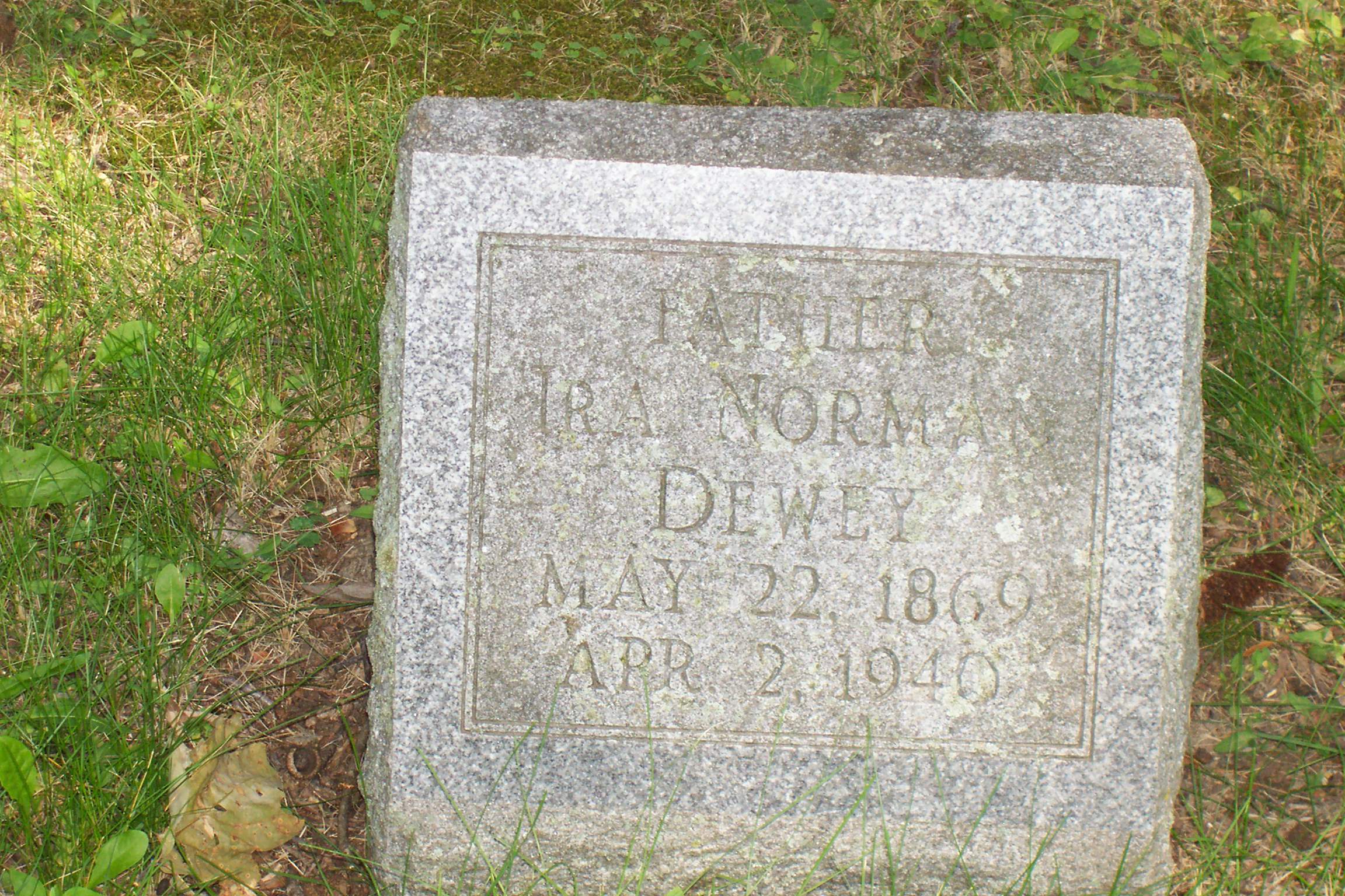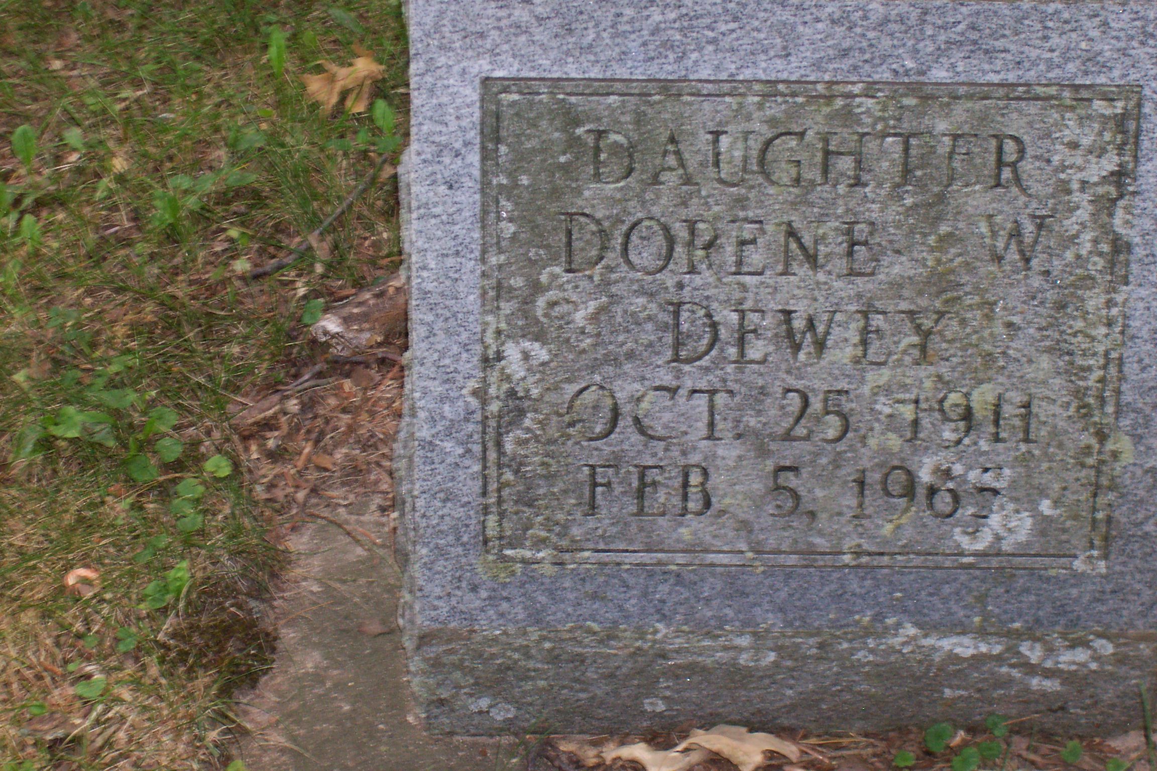 147. Ira Norman DEWEY was born on 22 May 1869 in Tomah Township, Monroe County, WI.106,178,204,409 He appeared in the census in 1870 in Tomah Township, Monroe County, WI.148 He appeared in the census in 1875 in Tomah Township, Monroe County, WI.149 Ira appeared in the census in 1880 in Tomah Township, Monroe County, WI.178 In October 1895 he was a merchant in Tunnel City, Greenfield Township, Monroe County, WI.409 On 3 March 1898 he was a merchant and he and Mr. Ludwig formed a partnership and purchased a stock of goods for a store in Mather, Kingston Township, Juneau County, WI.410 On 11 March 1898 Ira was a postmaster in Mather, Kingston Township, Juneau County, WI.411,412 In December 1895, a newspaper article noted that "Ira Dewey has gone to Chicago, where he will receive the position of mail clerk on the railroad." He was appointed Postmaster in Mather, WI on 11 Mar 1898. He appeared in the census in 1920 in Mather, Kingston Township, Juneau County, WI.413 His occupation was listed as "Merchant, Retail." He appeared in the census in 1930 in Mather, Kingston Township, Juneau County, WI.414 His occupation was listed as "Merchant, General Merchandise." Ira died on 2 April 1940 at the age of 70.155 He was buried in Tomah, Tomah Township, Monroe County, WI.106,241 in the Oak Grove Cemetery. Ira Norman DEWEY and Anna Loisa SCHULZ were married on 11 December 1902 in Greenfield Township, Monroe County, WI.89,217 Anna Loisa SCHULZ89 was born on 11 November 1877 in Germany.106,241,413 She emigrated in 1880 from Germany.413 She appeared in the census in 1920 in Mather, Kingston Township, Juneau County, WI.413 Anna appeared in the census in 1930 in Mather, Kingston Township, Juneau County, WI.414 She died on 11 October 1957 at the age of 79.106,241 She was buried in Tomah, Tomah Township, Monroe County, WI.106,241 in the Oak Grove Cemetery. Ira Norman DEWEY and Anna Loisa SCHULZ had the following children: +235 | i. | Ivah Lorene DEWEY. | 236 | ii. | Walter DEWEY was born on 29 September 1910.415 (It is believed that he was a son of Ira and Anna because his grave is with theirs and their daughter Dorene in Section OP, Block 2, Lot 36.) He died on 19 December 1910 at the age of 0.415 He was buried in Tomah, Tomah Township, Monroe County, WI.241 in the Oak Grove Cemetery. | 237 | iii. | Dorene Wilhelmine DEWEY was born on 25 October 1911 in Mather, Kingston Township, Juneau County, WI.153,327 She appeared in the census in 1920 in Mather, Kingston Township, Juneau County, WI.413 She graduated in 1930 in Tomah, Tomah Township, Monroe County, WI.416 from Tomah High School. Dorene appeared in the census in 1930 in Mather, Kingston Township, Juneau County, WI.414 Before 1965 she was a school teacher in Sparta, Sparta Township, Monroe County, WI.153,417 She also taught in Warrens. She died on 5 February 1965 at the age of 53 in Tomah, Tomah Township, Monroe County, WI.153 Dorene was buried on 7 February 1965 in Tomah, Tomah Township, Monroe County, WI.241 in the Oak Grove Cemetery. | 238 | iv. | Harold A. DEWEY was born on 7 April 1914 in Wisconsin.413,418 He appeared in the census in 1920 in Mather, Kingston Township, Juneau County, WI.413 He appeared in the census in 1930 in Mather, Kingston Township, Juneau County, WI.414 Harold died in November 1987 at the age of 73 in Virginia.418 |