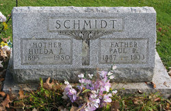 Hulda Elizabeth PERGANDE and Paul R. SCHMIDT were married on 7 February 1928.59,434 Paul R. SCHMIDT, son of (Unknown) SCHMIDT and Amelia D. UNKNOWN (SCHMIDT), was born about 1888 in Wisconsin.151 He appeared in the census in 1930 in Clifton Township, Monroe County, WI.151 He died on 21 May 1933 at the age of 45.120 Hulda Elizabeth PERGANDE and Paul R. SCHMIDT had the following children: