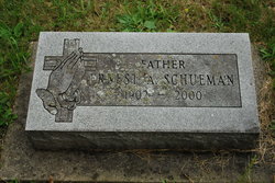 171. Ernst August J. "Ernie" SCHUEMAN129 was born on 8 December 1902 in Monroe County, WI.158 He died on 19 April 2000 at the age of 97 in Janesville, Rock County, WI.56,158 He was buried in Tomah, Tomah Township, Monroe County, WI.158 in the Oak Grove Cemetery (Section OP, Block 4, Lot 53). Ernst August J. "Ernie" SCHUEMAN and Virginia F. UNKNOWN (SCHUEMAN) were married in 1927.56,158 Virginia F. UNKNOWN (SCHUEMAN)56 was born in 1907.56 She died in 1987 at the age of 80.56 She was buried in Janesville, Rock County, WI.56 in the Milton Lawns Memorial Park.