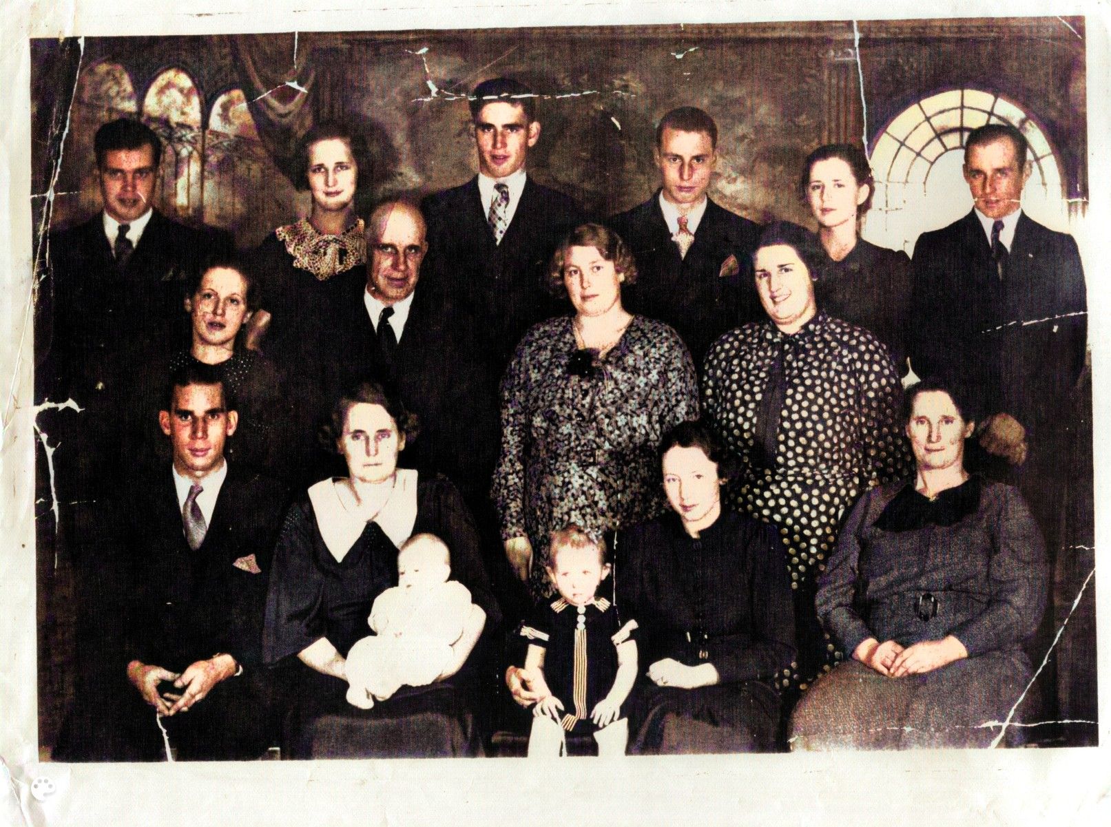 After a bounteous supper and the usual bickering and hollering, we drove home in horse and carriage in a really bad blizzard--after which we had a real snow storm. Roads blocked for a very long time. Sid Horel said 'not to worry' if Roll didn't come, he'd take his place. He insisted on lacing up my wedding shoes. Some of the kids had been upstairs snooping. Luella and I inspected my suitcase and found my nightgown sewn up in many places. It was a good thing they did, as our bedroom was very cold. At 8 o'clock we took our pastor in front of the big window with butterflies in stomach and wheels in my head. Roll was excited and said 'I do' out of turn. After a bounteous supper of everything from soup to nuts, at 2:00 A.M. we went in horse and buggy to our home and slept in a very cold room. We would have frozen if we hadn't been out of our minds. After the ladies frosted the cake, they set it out on back porch to harden the frosting and our two pet coons walked all over the cake, leaving tracks; so a quick repair was done and no one was the wiser."