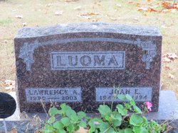 | Home Surname List Name Index Sources | Twelfth Generation290. Joan Ellen VANDERVORT (+) (~) and Lawrence LUOMA were married on 1 January 1961 in Herbster, Clover Township, Bayfield County, WI.94 Lawrence LUOMA, son of Herman August LUOMA and Maria Louise DEGIACINTO, was born on 31 December 1939 in Herbster, Clover Township, Bayfield County, WI. He died in 2003 at the age of 64.561 He was buried in Herbster, Clover Township, Bayfield County, WI.561 in the Herbster Community Cemetery. Joan Ellen VANDERVORT (+) (~) and Lawrence LUOMA had the following children:
