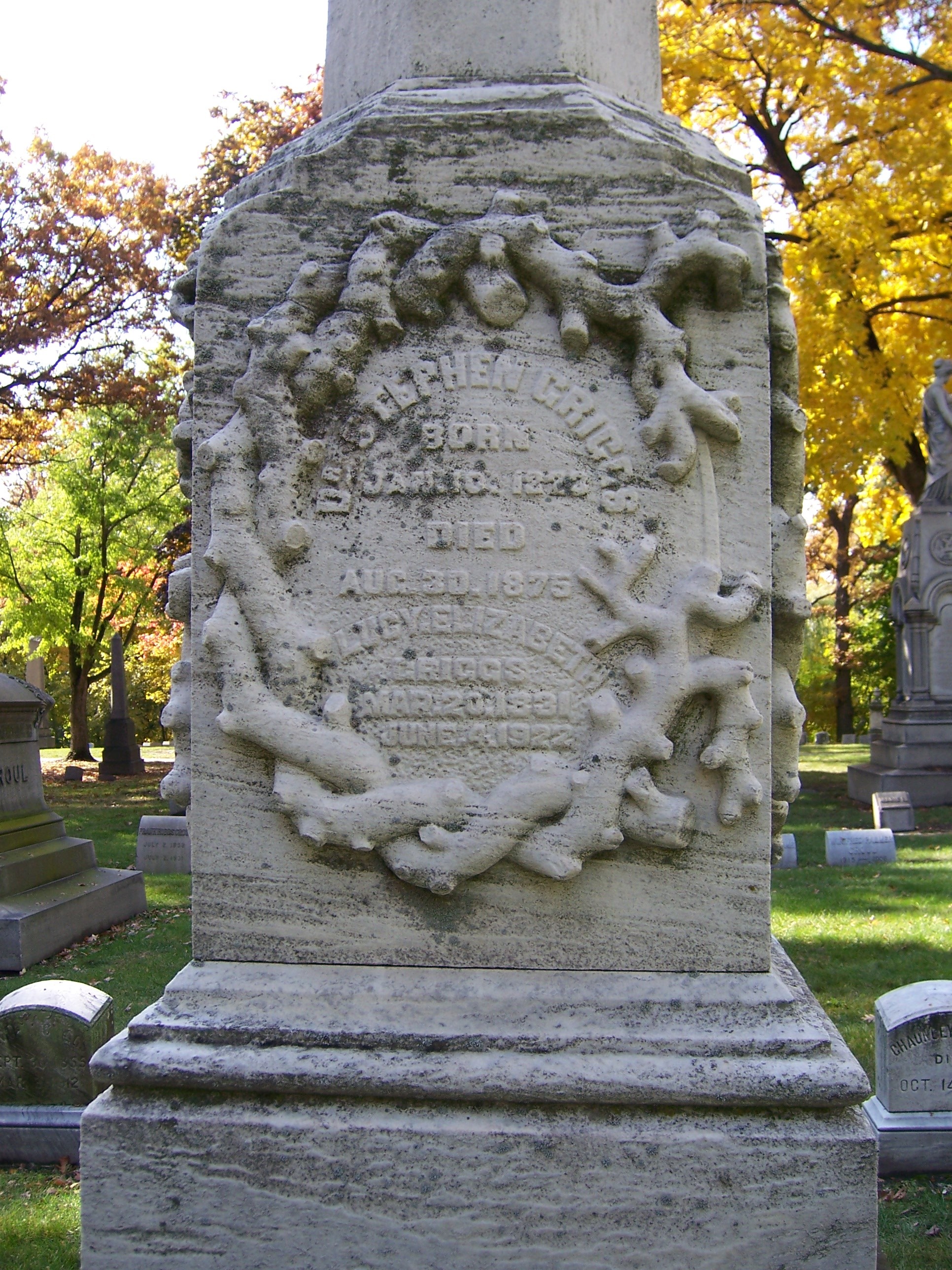 Doctor Stephen Adelbert GRIGGS and Lucy Elizabeth SWIFT were married on 27 January.128,233 Lucy Elizabeth SWIFT, daughter of Joseph SWIFT and Eliza ROOT, was born on 20 March 1831 in Ohio.127,232,233 She appeared in the census in 1870 in Detroit, Wayne County, MI.232 She died on 4 June 1922 at the age of 91 in Michigan.127,233 Lucy was buried in Detroit, Wayne County, MI.127,234 in the Elmwood Cemetery. Doctor Stephen Adelbert GRIGGS and Lucy Elizabeth SWIFT had the following children: +396 | i. | Stephen E. Adelbert GRIGGS. | 397 | ii. | Frances Elizabeth GRIGGS was born on 28 December 1851 in Ohio.128,232 She was buried in Detroit, Wayne County, MI.235 in the Elmwood Cemetery.